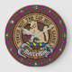 Clan MacGowan crest badge surrounded by a strap and buckle over tartan background. Custom text.