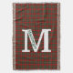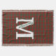 Colourful plaid throw blanket done in the red and green clan MacGregor tartan plaid pattern. A large white one letter monogram is ready to personalise along with the green text running down the large letter. Great addition to any room and makes a nice gift idea.