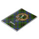 Clan MacInnes crest badge surrounded by a strap and buckle over tartan background. Custom text.