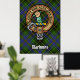 Clan MacInnes crest badge surrounded by a strap and buckle over tartan background. Custom text.