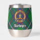 Clan MacIntyre crest badge surrounded by a strap and buckle over tartan background. Custom text on both sides.