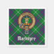 Clan MacIntyre crest badge surrounded by a strap and buckle over tartan background. Custom text.