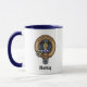 Clan MacKay crest badge surrounded by a strap and buckle over blue tartan background. Custom text on both sides.