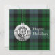 Clan Mackay tartan background, silver Christmas ornament with Mackay crest badge overlay and customisable holiday message text
