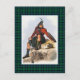 Postcard with a digitally cleaned and enhanced vintage watercolor illustration by Scottish artist Robert Ronald McIan, dated to 1845. Framed with the Clan MacKay tartan, a traditional plaid pattern in green, blue, and black. Digital tartan image created by Susan Wallace of Plaidwerx using thread count provided by The Scottish Register of Tartans.