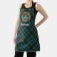 Clan MacKenzie crest badge surrounded by a strap and buckle over tartan background. Custom text.