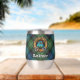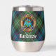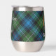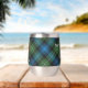 Clan MacKenzie crest badge surrounded by a strap and buckle over tartan background. Custom text on both sides.