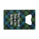 Clan MacKenzie crest badge surrounded by a strap and buckle over tartan background. Custom text on both sides.