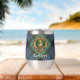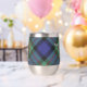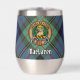Clan MacLaren crest badge surrounded by a strap and buckle over tartan background. Custom text on both sides.