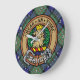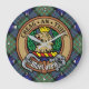 Clan MacLaren crest badge surrounded by a strap and buckle over tartan background. Custom text.