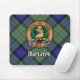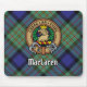 Clan MacLaren crest badge surrounded by a strap and buckle over tartan background. Custom text.