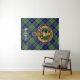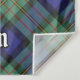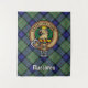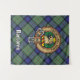 Clan MacLaren crest badge surrounded by a strap and buckle over tartan background. Custom text.