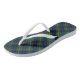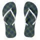 Flip flops with the Clan MacLaren tartan, a traditional Scottish plaid pattern in blue and green with bright red and yellow accents.