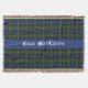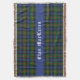 Throw blanket features Scottish Clan MacLaren tartan plaid pattern with customisable text band