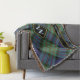 A quality printed throw has its advantages. This is a much finer weave throw than its loopier cousins, and though lighter, it is worth the investment for custom room accessorizing. The back is much prettier than the typical brown, and the fringe on the long sides very vivid, the selvage nicely done. Before photographing, I washed the throw in cold water, delicate, with a thicker woven throw the same size. On tumble dry low, this throw was dry in half the time as the other. This is a very practical quality if you use throws for furniture covers or to wrap up in frequently. The sleekness of the fabric makes it a great layer for accenting or protecting without the feeling of sitting on too much stuff. Perfect for napping or when you feel a light chill coming on. The color printing is beautiful and on this fabric, matched the design and color of my Photoshop image. This is an advantage for blending room fabrics and colors. The fringe on the short sides prints the colors from the design image and therefore varies from the side fringe. I streaked a white fractal line through the plaid pattern to give the illusion of weaving. This printed as crisp as an illusory thread, and put some white in the short side fringe, showing another advantage of print vs loomed- for artistic purposes, line lines, detail, and color integrity can be planned and preserved. My loomed throws have color limitations and more of a needlepoint texture. Print throws reproduce an exact image. The throw felt a little stiff straight out of the package, but this went away in the first delicate wash. Of course I searched the wash water for ink or bleeding and there was none.