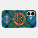 Clan MacLeod crest badge surrounded by a strap and buckle over green hunting tartan. Custom text.