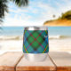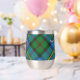 Clan MacLeod crest badge surrounded by a strap and buckle over hunting tartan background. Custom text on both sides.