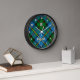 The size of the clock is dramatic and the abstract alcohol ink design is soothing and intricate at the same time. I chose the black frame that adds pop to the blue and gold design. The gold printing would be better in a slightly darker or larger font. I love it and I’m looking for just the right place in ny new apartment. I would recommend this clock for a personal gift or a present. I feel that the quality is excellent for the money! I’m a bit of a clock nut so I’m pretty particular about my purchases. The clock is larger in diameter than many if the clocks I have, so it stands out very well. I think a slightly darker printing color and a moderately larger size would best suit a professional decor or add more impact in a work place item.