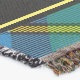 A quality printed throw has its advantages. This is a much finer weave throw than its loopier cousins, and though lighter, it is worth the investment for custom room accessorizing. The back is much prettier than the typical brown, and the fringe on the long sides very vivid, the selvage nicely done. Before photographing, I washed the throw in cold water, delicate, with a thicker woven throw the same size. On tumble dry low, this throw was dry in half the time as the other. This is a very practical quality if you use throws for furniture covers or to wrap up in frequently. The sleekness of the fabric makes it a great layer for accenting or protecting without the feeling of sitting on too much stuff. Perfect for napping or when you feel a light chill coming on. The color printing is beautiful and on this fabric, matched the design and color of my Photoshop image. This is an advantage for blending room fabrics and colors. The fringe on the short sides prints the colors from the design image and therefore varies from the side fringe. I streaked a white fractal line through the plaid pattern to give the illusion of weaving. This printed as crisp as an illusory thread, and put some white in the short side fringe, showing another advantage of print vs loomed- for artistic purposes, line lines, detail, and color integrity can be planned and preserved. My loomed throws have color limitations and more of a needlepoint texture. Print throws reproduce an exact image. The throw felt a little stiff straight out of the package, but this went away in the first delicate wash. Of course I searched the wash water for ink or bleeding and there was none.