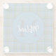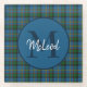 Monogrammed coaster done in a traditional and colourful Scottish clan MacLeod tartan plaid pattern. A blue circle has a monogram and family name. Personalise the monogram and name to suit your needs.