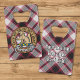 Clan MacPherson crest badge surrounded by a strap and buckle over hunting tartan background. Custom text on both sides.