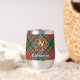 Clan MacPherson crest badge surrounded by a strap and buckle over tartan background. Custom text on both sides.
