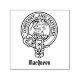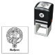 Clan MacQueen crest badge surrounded by a strap and buckle. Custom text.