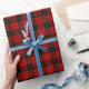 Wrapping paper features Scottish Clan MacQueen tartan plaid pattern