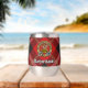 Clan Marjoribanks crest badge surrounded by a strap and buckle over tartan background. Custom text on both sides.