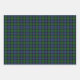 All-occasion gift wrap in Clan Murray tartan variations. One sheet each of Clan Murray tartan (green and royal blue plaid), Clan Murray Ancient tartan (light green, blue, and black plaid), and Clan Murray Dress tartan (royal blue, forest green, and white plaid). Choose from matte or semi-gloss paper.