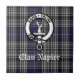 Handsome design features Scottish Clan Napier crest badge and text on clan tartan background.