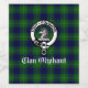 Scottish Clan Oliphant crest badge and text on tartan background