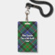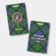 Clan Paterson crest badge surrounded by a strap and buckle over tartan background. Custom text.