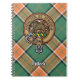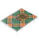 Clan Pollock crest badge surrounded by a strap and buckle over tartan background. Custom text.