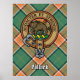 Clan Pollock crest badge surrounded by a strap and buckle over tartan background. Custom text.