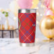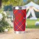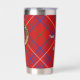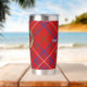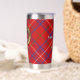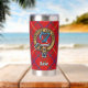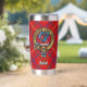 Clan Rose crest badge surrounded by a strap and buckle over tartan background. Custom text on both sides.