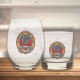 Clan Rose crest badge surrounded by a strap and buckle over tartan background. Custom text on both sides.