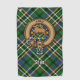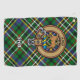 Clan Scott crest badge surrounded by a strap and buckle over green tartan background. Custom text.