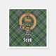 Clan Scott crest badge surrounded by a strap and buckle over green tartan background. Custom text.