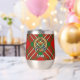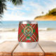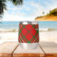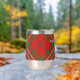 Clan Scott crest badge surrounded by a strap and buckle over red tartan background. Custom text on both sides.