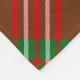 Clan Scott crest badge surrounded by a strap and buckle over red tartan background. Custom text.