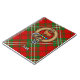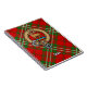 Clan Scott crest badge surrounded by a strap and buckle over red tartan background. Custom text.