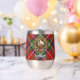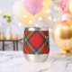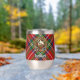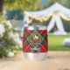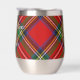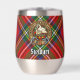 Clan Stewart crest badge surrounded by a strap and buckle over Royal tartan background. Custom text on both sides.