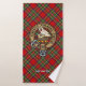 Clan Stewart crest badge surrounded by a strap and buckle over Royal tartan background. Custom text on each towel.