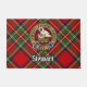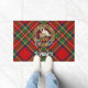 Clan Stewart crest badge surrounded by a strap and buckle over royal tartan background. Custom text.
