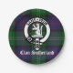 Paper plate design featuring Clan Sutherland tartan and crest badge