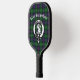 Stylish pickleball paddle features Scottish Clan Sutherland Modern Tartan background with clan crest badge and customisable text overlay