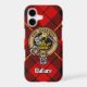 Clan Wallace crest badge surrounded by a strap and buckle over tartan background. Custom text.
