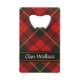 Clan Wallace crest badge surrounded by a strap and buckle over tartan background. Custom text on both sides.