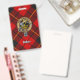 Clan Wallace crest badge surrounded by a strap and buckle over tartan background. Custom text.